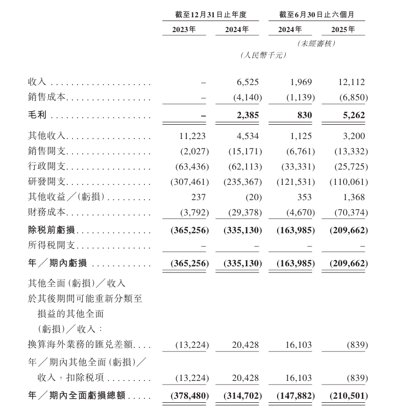 礼邦医药提到,公司的产品组合包含7款候选产品(其中3款处于临床阶段)及一款商业化产品。公司的核心 产品AP301是一款潜在BIC的磷酸盐结合剂,用于治疗高磷血症。AP301目前处于临床开发阶段,该产品将金 属离子(即铁)与药用级纤维(即阿拉伯胶)进行不可逆结合,形成无系统性吸收的金属-纤维复合物。 2024年上半年、2024年以及2025年上半年,公司分别实现营业收入约196.9万元、652.5万元、1211.2万元。 2023年、2024年上半年、2024年以及2025年上半年,净利润分别为亏损3.65亿元、亏损1.64亿元、亏损3.35亿 元、亏损2.10亿元。 公司的收入由单一客户产生,该客户为公司产品美信罗 在中国的经销商。公司于2024年6月开始销售美信罗 并确认相关收入。2024年、2025年上半年,公司来自单一客户的收入分别约为650万元、1210万元。 | | 截至12月31日止年度 | | 截至6月30日止六個月 | | | --- | --- | --- | --- | --- | | | 2023年 | 2024年 | 2024年 | 2025年 | | | | | (未經審核) | | ...