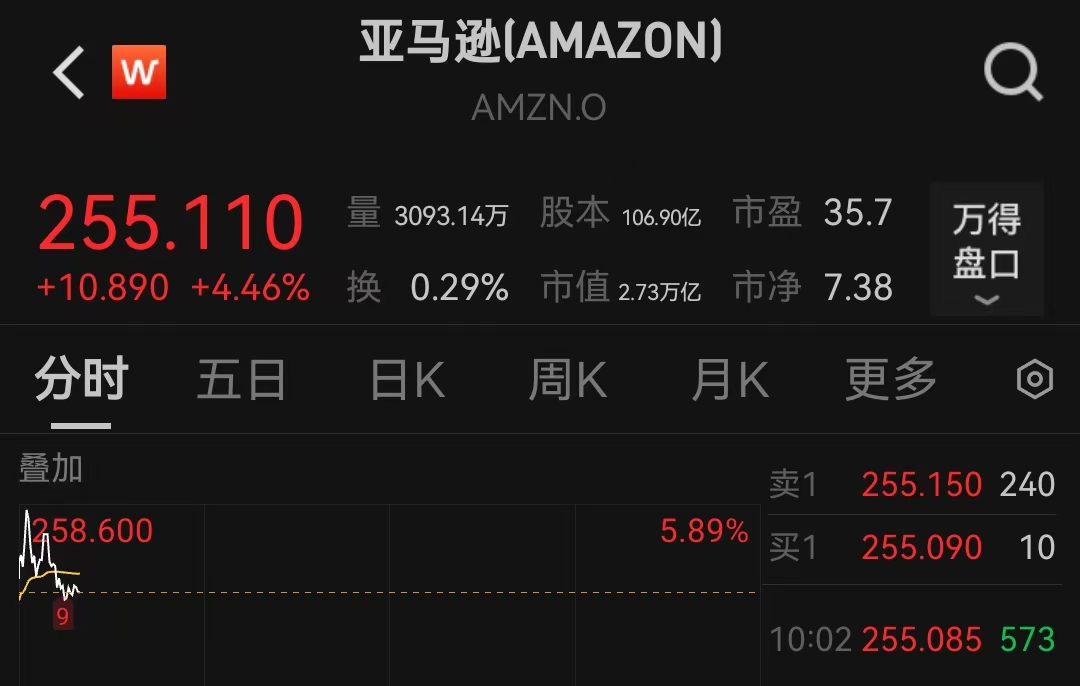 与OpenAI签署380亿美元算力供应协议,亚马逊开盘涨超4%
