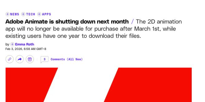 公司战略与产品调整 - Adobe计划于2026年3月1日停止开发其经典2D动画软件Animate,并于2027年3月1日彻底关闭文件访问权限,企业客户的最终截止日期为2029年3月1日 [1] - 公司未提供Animate的直接替代产品,仅建议用户通过其他Creative Cloud工具“部分实现功能” [3] - 此次Animate的退出被视为公司“去工具化”进程的延续,此前已停更Flash Player并淘汰传统型设计软件 [3] 业务转型与财务表现 - Adobe的决策与其激进的AI战略直接相关,公司正从“软件供应商”转型为“AI服务平台” [3][4] - 公司推出了Firefly AI订阅服务,为企业客户定制生成式AI模型,并将AI集成至Photoshop、Express等核心产品 [3] - 财报显示,Adobe AI相关收入占比已超过30% [3] 历史地位与行业影响 - Animate软件前身为Flash Professional,自1996年推出,曾主导互联网动画时代,并成为全球动画教育、独立游戏开发和短视频内容创作的核心工具 [3] - Adobe在声明中承认Animate“在构建动画生态系统中发挥了关键作用” [3] - 行业分析师指出,公司通过订阅制和生成内容分成模式扩大利润空间 [4] 市场反应与技术争议 - 技术进步催生了更符合用户需求的新平台,但AI能否真正替代专业工具的精准控制存在质疑 [3][4] - 游戏开发者质疑生成式动画可能适合营销素材,但无法满足叙事驱动的精品内容需求 [4]