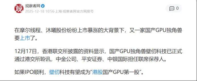 壁仞科技获赴港上市备案,国产GPU迎来资本化关键节点