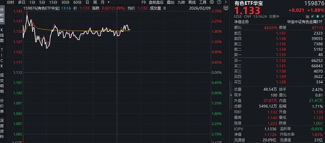 猛拉3.3%!有色ETF华宝(159876)放量突破上市高点!全天获资金净申购5520万份!白银有色等4股涨停!