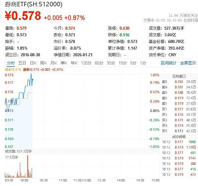 ETF盘中资讯|沪指突破十年新高!“旗手”迅速启动,两股涨停,顶流券商ETF(512000)放量涨逾3%!