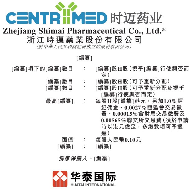 时迈药业递表港交所 华泰国际为独家保荐人