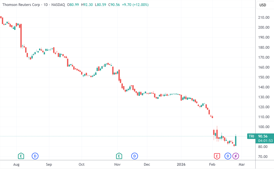 公司股价与市场反应 - 汤森路透公司股价在今日美国东部时间上午11:42大幅上涨近12% [1] - 公司股价在过去一年中遭受重挫,下跌近49%,是软件板块抛售潮的一部分 [2] - 尽管本月早些时候因Anthropic发布法律AI工具导致股价大跌,但此次因自身AI解决方案的成功而反弹 [4] AI产品进展与市场地位 - 公司宣布其人工智能法律助手CoCounsel现已拥有100万法律专业人士用户 [1][3] - CoCounsel能够进行更深层次的法律研究、加速诉讼工作,并能与Westlaw、Practical Law和Microsoft 365等法律专业人士常用程序集成 [3] - 该工具利用了公司超过175年积累并精炼的内容,并依赖于“专家开发的验证逻辑” [3] - 公司总裁兼CEO强调,专业人士已不再纠结是否使用AI,而是在信誉和客户数据面临风险时选择信任哪个AI,并重申客户数据受到保护 [3] 公司财务与估值状况 - 公司2025年调整后收益增长4%,有机营收增长7% [5] - 公司为2026年设定了稳健的增长指引 [5] - 公司股票目前交易价格约为过去市盈率的27倍,远低于其五年平均水平 [4][5] 行业背景与竞争环境 - 软件板块的抛售源于市场担忧AI能够以更少资源更快地复制软件解决方案 [2] - 在AI可能打破行业进入壁垒的新环境下,投资者需要为相关公司确定合适的估值倍数 [5] - 市场可能需要时间来消化处于类似境地的公司 [5]