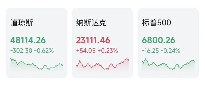 来源:中国基金报 【导读】特斯拉创历史新高!原油大跌至2021年以来新低 中国基金报记者 伊万 美东时间12月16日,美股三大指数涨跌不一,仅纳指收涨。 截至收盘,道琼斯指数跌0.62%,报48114.26点;纳斯达克指数涨0.23%,报23111.46点;标普500指数 跌0.24%,报6800.26点。 盘前公布的美国11月非农就业报告显示,美国11月非农新增就业6.4万人,高于市场预期,但10月就业 人数减少了10.5万人,11月失业率也升至4.6%,至创四年多来新高。周二公布的另一份数据表明,美国 10月份零售额持平,主要受到汽车和汽油销售疲软拖累。 市场担忧美国经济状况,投资者情绪偏谨慎。 美联储博官员斯蒂克表示,劳动力市场正在降温,但他预计不会出现明显放缓;多年未能实现通胀目标 可能"确实会损害"美联储的公信力;进一步降息将使货币政策接近或进入宽松区间,从而使通胀和通胀 预期面临风险。 大型科技股多数收涨,力撑纳指。 | 特斯拉(TESLA) | 489.880 | 3.07% | | --- | --- | --- | | TSLA.O | | | | 脸书(META PLATF | 657.1 ...