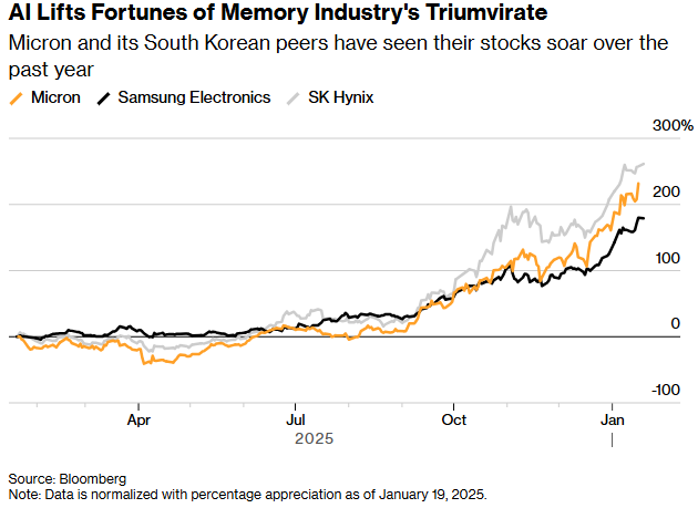 行业供需状况 - 内存芯片短缺在过去一个季度有所加剧 且由于人工智能基础设施所需高端半导体需求激增 供应紧张局面将持续到2025年以后 [1] - 制造人工智能加速器所需的高带宽内存正消耗整个行业大量可用产能 导致手机和PC等传统行业面临巨大供应短缺 [1] - PC和智能手机制造商已开始排队 试图锁定2026年以后的内存芯片供应 而自动驾驶汽车和人形机器人将进一步推高需求 [1] - 由于内存成本上涨挤压生产 包括小米集团、Oppo和传音控股在内的中国主要智能手机制造商正在削减2026年的出货目标 [1] - 行业追踪机构Counterpoint Research估计 因内存芯片短缺推高成本 2025年全球智能手机出货量可能会下降2.1% [2] - PC制造商如戴尔科技也警告可能受到持续短缺的影响 [2] - SK海力士表示其2026年的全部芯片产能已售罄 美光也表示其2025年的人工智能内存半导体已被预订一空 [2] 公司战略与产能扩张 - 美光科技为优先供应包括英伟达在内的战略企业客户 于2024年12月宣布终止其英睿达品牌消费级内存业务 [5] - 人工智能行业对内存芯片的强劲需求 增加了美光在美国和亚洲扩大制造规模的紧迫感 [5] - 美光计划出资18亿美元购买中国台湾省的一处包含现有厂房的场地 以缩短新工厂投产时间 [6] - 公司计划于2027年下半年开始在该台湾基地产出具有实质意义的DRAM晶圆 [6] - DRAM为英伟达和英特尔的处理器提供运行环境 也是人工智能加速器所需高带宽内存的核心 [6] - 美光在纽约州锡拉丘兹市郊耗资1000亿美元的生产基地已动工 计划建设四个DRAM晶圆厂 每个厂房大小约相当于10个足球场 首批晶圆预计于2030年下线 [1][6] - 公司在爱达荷州博伊西的现有研发设施旁增加两个晶圆厂产能 第一家计划于2027年开始生产 [6] - 公司还在现代化并扩建位于弗吉尼亚州的现有制造设施 [6] - 这些扩张计划是公司承诺将其40%的DRAM制造转移至美国本土的一部分 [6] - 产能转移目标得益于公司在2024年获得的62亿美元《芯片法案》拨款 以及施工期间可利用的目前已上调至35%的税收抵免 [6] 市场表现与行业影响 - 得益于人工智能热潮 全球内存芯片行业三巨头美光、SK海力士和三星电子的股价在2025年均大幅飙升 [2]
