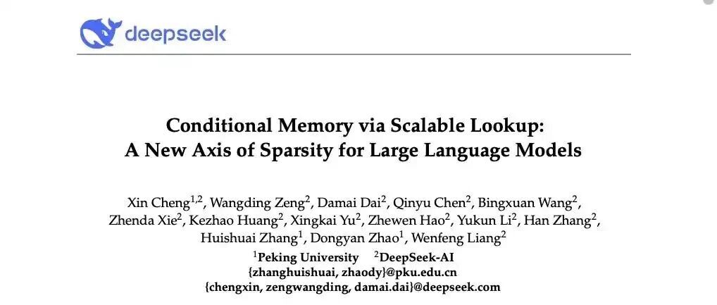 DeepSeek V4路线图隐现?梁文锋署名重磅论文发布,聚焦大模型条件记忆模块