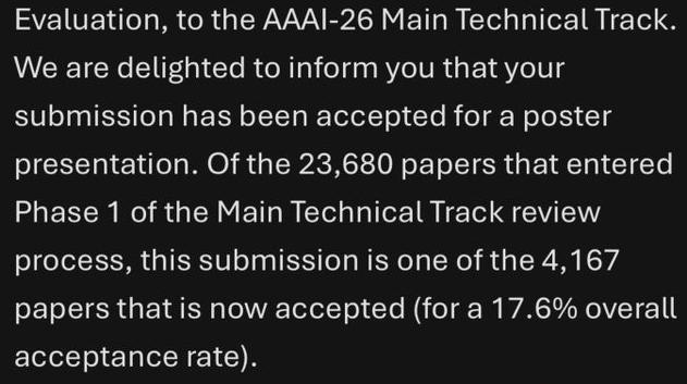 AAAI 2026录用结果重磅公布!这一届,投稿量暴增至23,680篇,录用率仅17.6%,竞争程度远超往年。一些成功上岸的研究员们晒出了录用成绩单,有 人甚至拿下了88887高分。 AAAI 2026录用结果出炉! 这几天,AAAI组委会陆续发出邮件,AI圈年度顶会录用结果随之揭晓。 邮件显示,AAAI 2026共收到23,680份论文投稿,创历史新高,AAAI 2025一共收到12957篇有效投稿。 同时,4,167篇被录用,录用率仅为17.6%。作为对比,今年AAAI录用了3032篇论文,录用率23.4%。 一些收到录用邮件的研究员们,纷纷晒出了自己的成绩单。 网友晒出成绩单 北大张铭教授组中,一位博五同学顾怿洋作为一作的论文被AAAI 2026录用,题为「CogniTrust:基于认知记忆的可验证监督的鲁棒散列方法」。 今年,他已有4篇CCF-A一作论文,前三篇分别被Artificial Intelligence、NeurIPS、ACM MM接收。 地址: https://papercopilot.com/statistics/aaai-statistics/aaai-2026-statistics/ ...