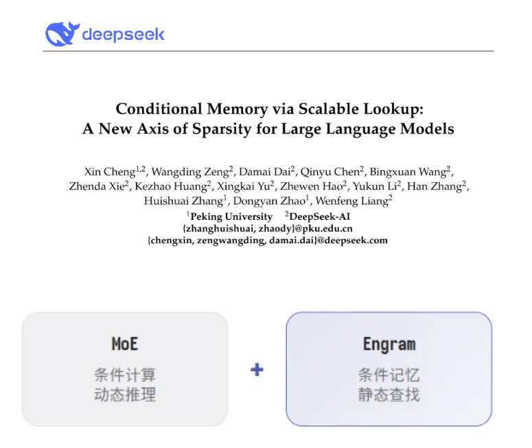 市场表现 - 截至2026年1月14日13:45,中证人工智能主题指数(930713)强势上涨2.09% [1] - 指数成分股用友网络上涨10.01%,光迅科技上涨9.93%,润泽科技上涨9.32%,中科星图、芯原股份等个股跟涨 [1] - AI人工智能ETF(512930)上涨1.66%,最新价报2.4元 [1] 行业动态与催化剂 - 阿里巴巴将于近期发布Qwen 3.5,其多模态融合理解、Agent、Coding能力等方面有望取得明显进步 [1] - 春节前后,字节、腾讯、DeepSeek等大厂预计还将发布一批新的模型和产品 [1] - DeepSeek发布的Engram模块为大语言模型架构优化提供了新方向,该技术通过引入可扩展的条件记忆机制,在降低计算成本的同时提升模型推理效率 [1] - 实测数据显示,Engram模型在MMLU、CMMLU等知识类任务中分别提升3.4分和4.0分,在BBH复杂推理任务中较同参数基线模型提升高达5.0分 [1] - 千亿级参数表挂载至CPU内存后,模型吞吐量下降不到3%,展现出优异的存算分离能力与商业化潜力 [1] 指数与ETF构成 - AI人工智能ETF紧密跟踪中证人工智能主题指数 [2] - 中证人工智能主题指数选取50只业务涉及为人工智能提供基础资源、技术以及应用支持的上市公司证券作为指数样本 [2] - 截至2025年12月31日,指数前十大权重股分别为中际旭创、新易盛、寒武纪、澜起科技、中科曙光、科大讯飞、海康威视、豪威集团、金山办公、浪潮信息 [2] - 前十大权重股合计占比58.08% [2] - AI人工智能ETF(512930)设有场外联接基金,包括平安中证人工智能主题ETF发起式联接A(023384)、C(023385)、E(024610) [2]