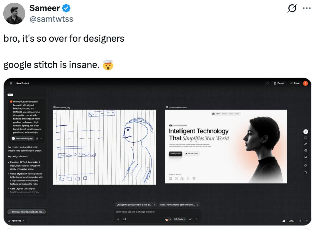 谷歌Stitch「氛围设计」干崩Figma 8.8%股价:十年经验,败给巨头一次更新(附实测)