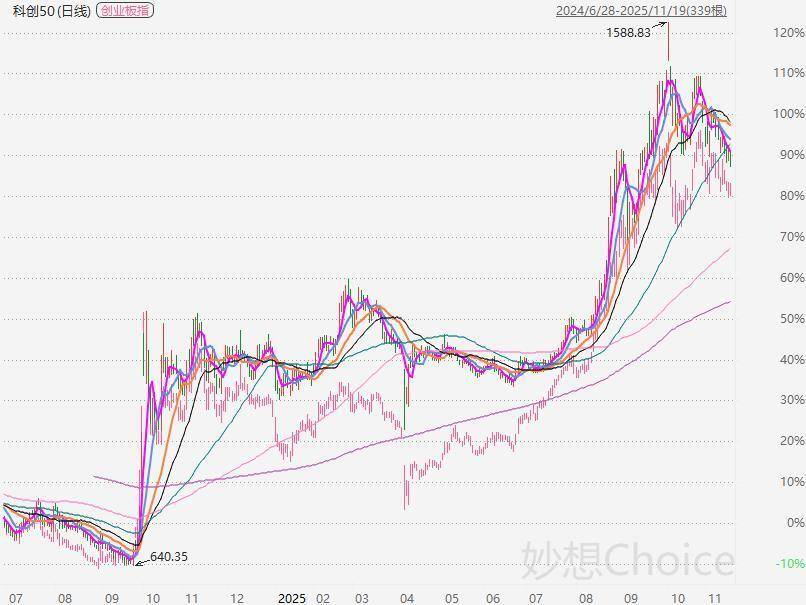 AI科技股的抛售潮延续,昨天纳指下跌1.21%,拖累市场情绪,今天亚太股市在昨天大跌的基础上窄幅震荡,等待明天凌晨英伟达财报 公布,市场观望情绪浓重,A股大幅缩量、成交额不足1.8万亿。 昨天有提到,创业板指、科创50已经走出了双头,就差一根放量k线确认方向,今天缩量到了极限,是向上反弹还是向下破位就在这几个 交易日了。 虽然现在市场很关注英伟达的业绩,但我觉得即使英伟达财报超预期也无法解决当前市场对AI的分歧,因为市场的分歧不是明年英伟达 gpu出货能不能兑现,而是数据中心建设的账算不算的过来,是对未来三年AI资本开支持续性的担忧,市场不太担忧明年AI硬件的业 绩,但害怕明年是业绩高点。AI硬件是目前AI浪潮的受益者,所以硬件无法自证,能解决AI分歧的只有应用。 近期全球AI科技股的下跌是嵌入在金融市场调整周期之中,下跌时候的利空更显得令人信服,这样也就变相的强化了的AI的分歧。其实 昨晚发布的gemini3证明了AI智能仍在进化,scaling law 并没有结束,Post-training仍有很大空间,多来几个这样的利好,AI的分歧应该就 能慢慢消化掉。 除了机构抱团的板块外,这两天题材股、小票可谓是被 ...