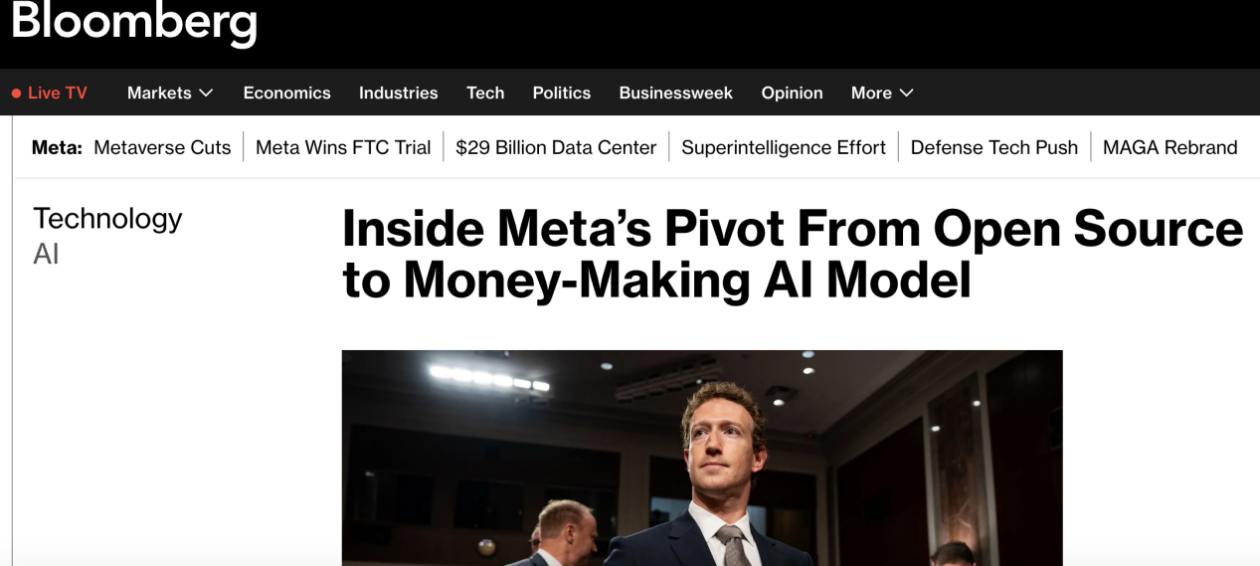 公司动态与战略调整 - Meta组建名为TBD Lab的新团队,其正在训练的“牛油果”(Avocado)模型使用了包括谷歌Gemma、OpenAI GPT-oss和阿里巴巴Qwen在内的多个第三方模型,该模型预计于明年春季首次亮相并可能作为闭源模型推出 [1] - 针对相关报道,Meta发言人回应称模型训练工作正按计划进行,时间表没有发生有意义的变更 [1] - 消息曝光后,阿里巴巴美股盘前一度上涨4%,收盘涨幅2.53% [1] - 因Llama 4表现不佳,Meta在最新一季度财报会上仅轻描淡写地提及Llama一次,该模型已不再是公司焦点 [5] - 扎克伯格随后对公司内部进行人事调整,拥有20年工龄的首席产品官Chris Cox在Llama 4翻车后被撤掉AI部门管理权限,部分Llama 4团队成员也被边缘化 [5] - 扎克伯格亲自挂帅开启AI“梦之队”招聘计划,从外部高薪挖来Scale AI创始人Alexandr Wang担任新的人工智能负责人,执掌全新的TBD实验室,并开出亿元薪酬大肆挖角同行 [5] - 公司更直接叫停了部分激进的元宇宙项目,以集中资源与OpenAI等竞争对手较量,对名为“牛油果”的新AI模型可谓孤注一掷 [6] - Alexandr Wang作为闭源模型的拥簇者,被认为是Meta新模型转向闭源的核心原因 [6] - 在Alexandr Wang领导下,Meta Superintelligence Lab在11月几乎毫无动作 [11] 行业竞争格局演变 - 过去两年,Meta通过开源Llama系列成功扮演了“反OpenAI联盟”的盟主,Llama一度被视为开源界的Linux,是全球开发者(包括中国开发者)的首选底座 [2] - 这一格局在2025年开始瓦解,随着年初DeepSeek开源模型的横空出世,以及后续阿里Qwen、月之暗面、智谱、Minimax等AI新势力纷纷发布高性能开源模型,Meta对开源生态的统治地位开始摇摇欲坠 [3] - 2025年4月,Meta发布的Llama 4性能未获开发者认可,且模型在LMArena的榜单排名被曝出存在“作弊嫌疑”,进一步饱受负面评价 [3] - 从性能角度看,无论是中国的“AI六小龙”还是阿里等互联网大厂,其最新的开源模型发布时均选择性能对标OpenAI、Google等头部闭源模型,Meta的Llama系列模型甚至已不配作为参照组来展示性能 [3] - 在下载和衍生模型数量上,阿里Qwen模型对Meta实现了赶超,2024年8月,千问的衍生模型数量第一次超过Llama,到了2025年10月,千问模型在全球下载量上也正式超过了Llama [4] - 这意味着Meta无论在数量还是质量上都失去了全球开源模型老大的地位 [4] - 华尔街投行KeyBanc资本市场的分析师在11月的报告中写道,在某种程度上,Meta的AI之路恰恰与Alphabet相反:年初被视为AI赢家,但现在投资回报和战略方向却成了最大的问号 [10] - 美国媒体CNBC在报道中表示,真正具有突破性的AI产品不会出现在小团队手中,而是出现在那些掌握完整生态体系的企业里 [10] - Meta今年成为了美国资本市场上最让人失望的AI股之一 [10] 市场反应与舆论评价 - 社交媒体上,网友们对Meta花上亿美元挖角的员工们选择使用Qwen开源模型进行了大量调侃,有网友直言“花了数十亿美元雇AI研究员,敢情就是为了抄作业?” [6][9] - 扎克伯格过去多次借鉴抖音、微信等中国产品功能,本次使用千问模型被视作一个巨大的“回旋镖” [10] - 扎克伯格在今年年初的播客中曾警告,如果不进行开源对抗,世界将被“反映中国价值观”的AI模型所主导,而他本人也多次在公开场合渲染“中国科技威胁论”,在国会听证会上曾是唯一一个对中国窃取技术问题表现出强硬攻击姿态的硅谷CEO [10] - Meta在打造下一代闭源模型时向Qwen“取经”,某种程度上宣告其亲自承认了Llama在开源领域的统治力已经被终结 [10] - 从开源盟主到闭源追随者,从“中国威胁论”到“偷师”中国同行,Meta的“牛油果”尚未发布就已经舆论缠身,这被视作是硅谷面对中国AI快速崛起时集体焦虑的一个缩影 [11]