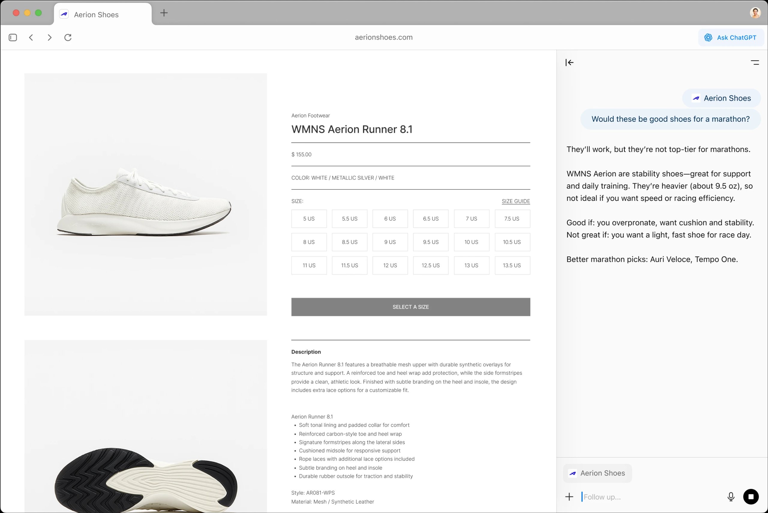 产品发布与核心功能 - OpenAI推出首款人工智能驱动的网页浏览器ChatGPT Atlas,旨在与谷歌等公司竞争 [3] - 浏览器以ChatGPT为核心,核心功能包括侧边栏互动“Ask ChatGPT”,可为用户总结网页内容或协助在线订购等 [3] - 产品配备“sidecar”侧边聊天面板功能,能自动获取用户屏幕上的上下文信息,简化操作步骤 [7] - 具备“浏览历史”功能,ChatGPT可记录用户访问的网站及操作,以提供更个性化的回答 [8] - 默认采用分屏界面,左侧显示网页,右侧为ChatGPT对话记录,用户可关闭此模式 [10] - 内置AI代理功能,初期仅对付费用户开放,可代用户执行预订餐厅、航班或编辑文档等操作 [11][12] 市场定位与竞争格局 - 公司首席执行官Sam Altman表示,人工智能为重新思考浏览器意义提供了十年一遇的机会 [4] - 浏览器现已在macOS上全球发布,后续将推出Windows、iOS和Android版本 [5] - 目前ChatGPT拥有超过8亿用户,但多数使用免费版本,公司通过推出浏览器寻求新的盈利方式 [5] - 公司加入由Perplexity AI、Opera等组成的队伍,共同借助AI重新构想浏览器产品 [5] - Chrome目前在全球拥有约30亿用户,OpenAI浏览器发布消息一度导致谷歌股价下跌4.8% [14][17] - 谷歌已于今年9月将Gemini AI模型整合至Chrome浏览器,计划未来让其代用户处理繁琐任务 [17] 产品愿景与行业影响 - ChatGPT主管Nick Turley受浏览器重新定义操作系统形态的启发,认为ChatGPT是类似的革命性现象 [14] - 公司工程主管表示,用户在ChatGPT Atlas中可与搜索结果进行对话,体验类似Perplexity或Google的AI模式 [7] - 产品负责人展示网页摘要及“光标聊天”功能,可即时润色邮件中的句子 [10] - 早期版本的网页AI代理在执行复杂任务时仍显力不从心,有待改进 [11]
