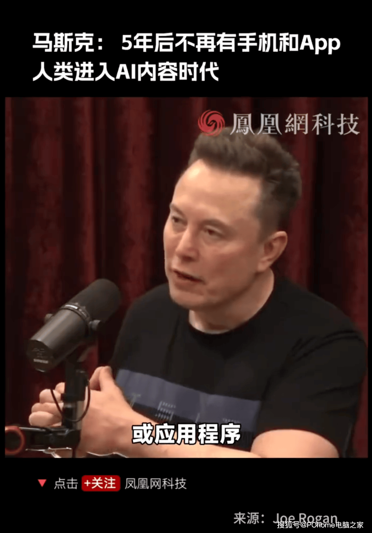 马斯克称5年后不再有手机和App:AI生成大部分内容
