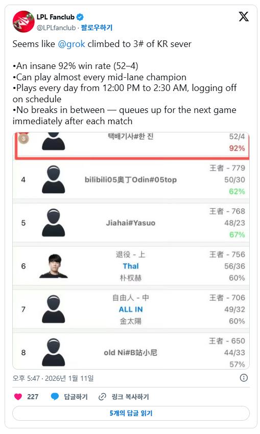 马斯克悄悄让Grok 5在韩服打LOL?醉翁之意在世界AI模型