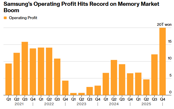 AI催生“内存荒”,“存储涨价潮”引爆三星Q4业绩:营业利润同比增208% 携营收齐创新高