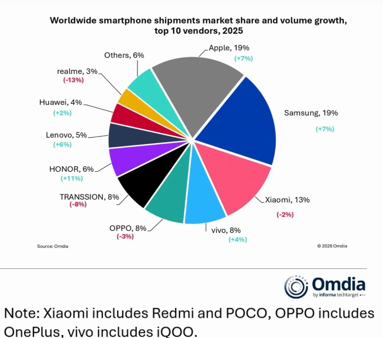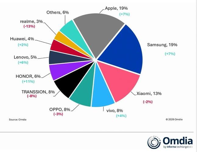 2025全球手机出货数据出炉,荣耀增速第一
