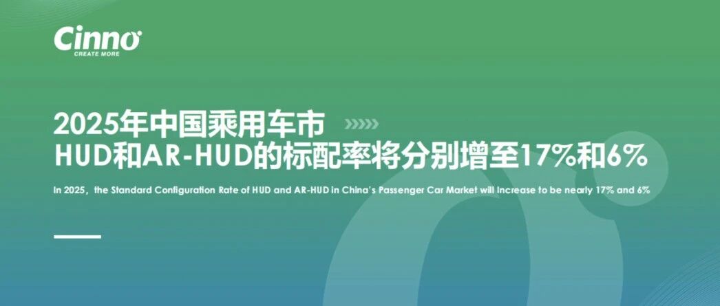2025年中国乘用车市HUD和AR-HUD的标配率将分别增至17%和6%