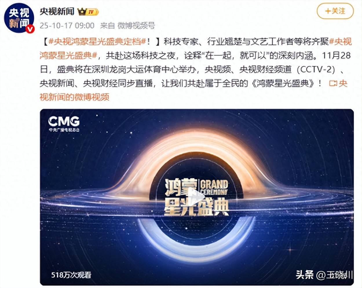 央视官宣!鸿蒙星光盛典定档,生态伙伴共同见证中国科技温度