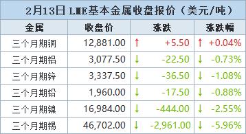 金属普跌 期铝自一周低位回升关税下调前景加剧定价不确定性【2月13日LME收盘】