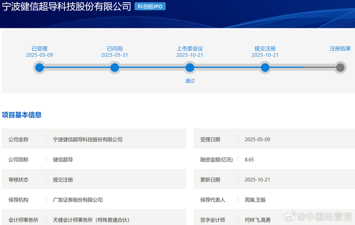 公司上市进程 - 科创板IPO申请已于10月21日过会,审核状态更新为“提交注册” [1] 市场地位与业务模式 - 以装机量口径统计,2024年公司MRI设备超导磁体全球市占率位列第五、国内企业第二,是全球最大的超导磁体独立供应商 [1] - 上市委会议关注其作为独立供应商的业务模式稳定性、市场空间及成长性 [1] - 公司是全球磁共振行业内排名第一的超导磁体独立供应商 [1] 产品与技术实力 - 已形成包括1.5T零挥发超导磁体、1.5T无液氦超导磁体、3.0T零挥发超导磁体和开放式零挥发超导磁体在内的产品矩阵 [1] - 在零挥发超导技术领域追平了与国际巨头约20年的技术差距 [2] - 公司是国内最早规模化生产高场强超导磁体的厂商之一 [2] - 自2015年以来,在零挥发超导磁体领域与联影医疗同步打破了欧美、日本厂商的垄断 [2] 客户与合作 - 与国内外知名MRI设备厂商建立了紧密合作关系,包括日本富士胶片集团、美国GE医疗、意大利百胜医疗、万东医疗、深圳安科、联影医疗、福晴医疗等 [2] 财务表现 - 2022年营业收入为35893.45万元,2023年为45064.48万元,2024年为42549.75万元,2025年1月至6月为25209.81万元 [2] - 2022年净利润为3463.50万元,2023年为4873.47万元,2024年为5578.39万元,2025年1月至6月为3191.84万元 [2] 行业影响 - 作为独立供应商保障了国产磁共振产业核心部件的批量供应,有力推动了MRI设备国产化率的提升 [2]