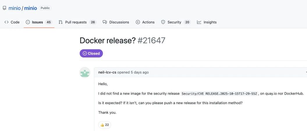 事件概述 - MinIO于2025年10月15日发布针对安全漏洞的CVE合规版本,但用户无法在DockerHub和Quayio上找到官方镜像[1] - MinIO核心开发者回复称目前只提供源码分发,用户需自行构建容器镜像,此回应引发社区巨大争议并登上Hacker News热榜第一[3] MinIO项目背景 - MinIO是一款高性能分布式对象存储系统,采用GNU AGPL v30许可证,兼容Amazon S3 API[5] - 项目在GitHub上有56K Star、63K Fork,拥有超过1,400个依赖包,在Docker Hub上的下载量超过10亿次[5] - 在国内市场被阿里巴巴、腾讯、百度、华为等超过9,000家企业采用,广泛应用于私有云、混合云和分布式存储场景[6] 政策变更的影响 - 停止社区版二进制分发意味着用户必须从源码构建容器,增加了运维难度和潜在安全风险[7][8] - 自动更新和漏洞修复流程可能中断,自行构建需要额外配置和测试,增加了维护成本,对安全合规要求高的企业影响尤其大[8] - 社区批评主要集中在缺乏提前公告、安全风险、企业信任问题以及功能移除等方面[12] MinIO的商业化路径演变 - MinIO最初采用Apache 20许可证,后于2021年改为APGLv3,要求服务提供者开放源代码[9] - 2025年5月,MinIO CE版本删除了控制台管理功能,以降低免费版本维护成本并推动企业版商业化[9] - 最新决定是停止社区版二进制分发,即停止分发免费的Docker镜像[9][10] 社区反应与行业影响 - 社区出现不满、担忧情绪,部分用户呼吁分叉项目或迁移到其他S3兼容方案[18] - 有用户透露MinIO几周前已放弃开源版本的文档维护,文档站点被下线并重定向到AIStor文档[14][15] - 有观点认为这是开源软件理想与商业现实的碰撞,维护官方容器镜像需要成本,公司必须在开源和商业化之间做出取舍[21][22]