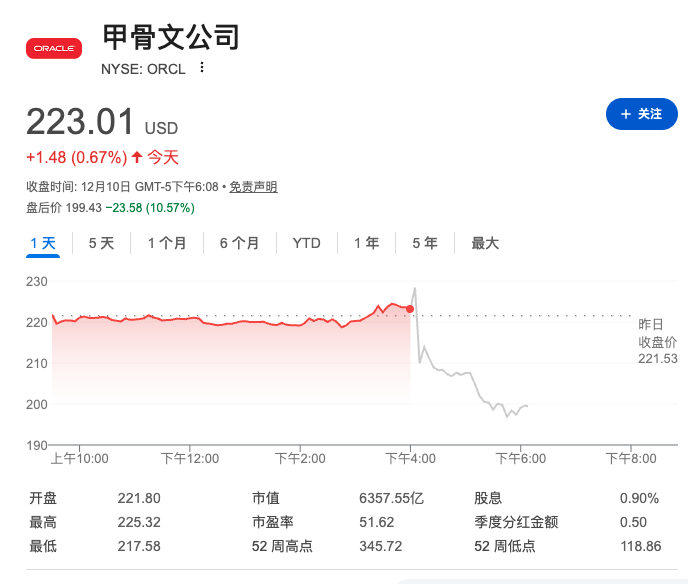 甲骨文业绩不及预期,资本开支比预期多约150亿美元,盘后重挫超10% | 财报见闻