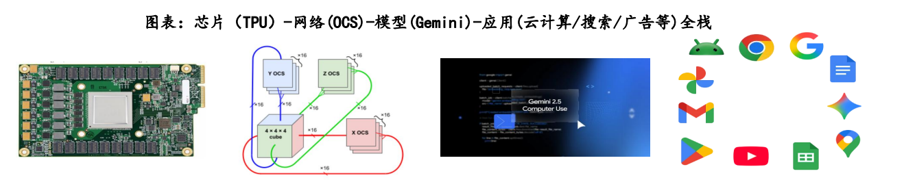 TPU v7"Ironwood"放量:ASIC市场的主导力量 中泰证券认为,谷歌AI已围绕芯片(TPU)—网络(OCS)—模型(Gemini)—应用(云计算/搜索/广告等)全栈优势构筑护城河。 中泰证券认为,本轮"谷歌链"爆发的关键技术变量在于OCS光交换技术的全面引入。本质上是用物理光路直接传输数据,彻底抛弃了"光—电— 光"的信号转换过程。通过深度整合自研TPU芯片与OCS(光电路交换机)技术,谷歌不仅突破了传统数据中心的能效与扩展瓶颈,更为下一代 智算网络确立了新的架构标准。谷歌已围绕芯片(TPU)—网络(OCS)—模型(Gemini)—应用(云计算/搜索/广告等)全栈优势构筑AI护城河。 在AI军备竞赛日益白热化的背景下,谷歌正凭借其从芯片到网络的"全栈式"创新构筑独特的算力护城河。 在中泰证券看来,这一轮"谷歌链"爆发的关键技术变量在于OCS光交换技术的全面引入。通过深度整合自研TPU芯片与OCS(光电路交换机) 技术,谷歌不仅突破了传统数据中心的能效与扩展瓶颈,更为下一代智算网络确立了新的架构标准。 TPU与OCS的深度耦合,不仅支撑了Gemini等大模型的高效迭代,也直接带动了上游光模块(特别是 ...