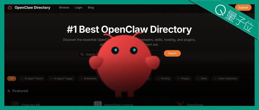 OpenClaw生态与工具目录网站概述 - 一个名为OpenClaw Directory的第三方网站,收录并分类整理了39个OpenClaw相关工具,在专业开发者社区获得曝光和认可[4][5] - 该网站将工具按功能精细分类,包括AI Agent Teams、AI Agent Trigger、Boilerplate、Command Centre、Deployer、Hosting、Token Optimizer、Skills、Plugins等9个类别[5] - 网站支持按“必备”、“可定制”、“开源”等标签筛选,并可按“流行”、“最新”、“评分最高”、“A-Z字母序”等方式排序,每个工具都提供简介、核心功能、用户评分等信息[6][7] 最受欢迎的OpenClaw工具(综合总榜前六) - **第一名 Claw for All**:面向开发者和普通用户,主打简化OpenClaw部署与管理流程,支持在线端和移动应用双端访问[11] - **第二名 OpenClaw Launch**:一款部署类工具,主打极速部署,声称可在30秒内完成OpenClaw应用的一键部署[16] - **第三名 ClawTeam**:一款AI Agent Teams类工具,提供为OpenClaw打造的预制智能体配置方案,强调一键部署和30秒内完成的极速执行[18] - **第四名 Vibeclaw**:声称可以1秒内在浏览器沙箱中本地运行OpenClaw,专为需要快速、可靠调用OpenClaw的开发者打造[20][21] - **第五名 Tinkerclaw**:被描述为一站式服务平台,旨在帮助创业者与团队零技术门槛地部署、管理并扩展其OpenClaw AI助手,整合了部署、定制、工具支持和社区资源[23][24] - **第六名 ClawWrapper**:旨在简化OpenClaw工具的封装与上线流程,特点包括极速封装上线、高质量封装模板和友好的操作流程[26] 工具目录网站的附加功能 - 网站不仅提供工具目录,还设有专属的Blog板块,系统性提供从入门科普到进阶优化的各种指南、教程[29] - 教程内容广泛,包括部署选型指南、常见故障修复方案、Token用量优化、AI API性价比选型等进阶内容,甚至涵盖“什么是OpenClaw”等基础科普[30][33] - 开发者可以在该网站上提交自己的OpenClaw工具,平台展示了精选的高评分核心工具[27]