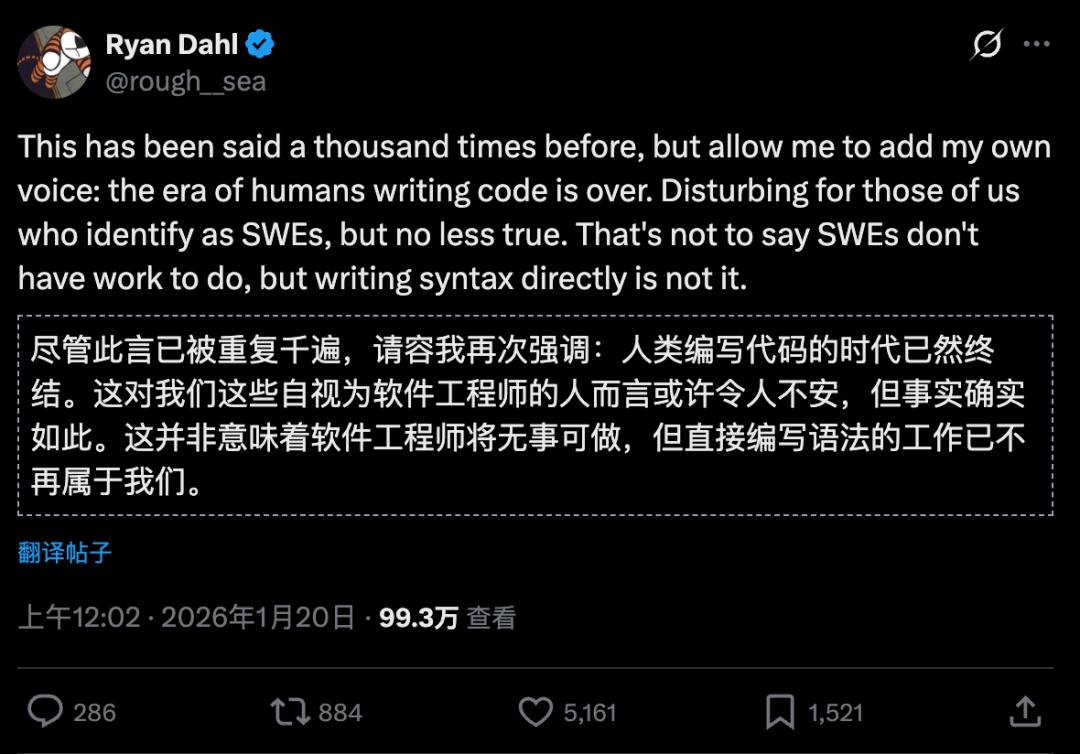 Node.js之父官宣:人类手写代码时代真的结束了