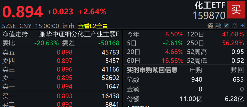 化工ETF(159870)收涨超2.6%,连续4天获资金净流入