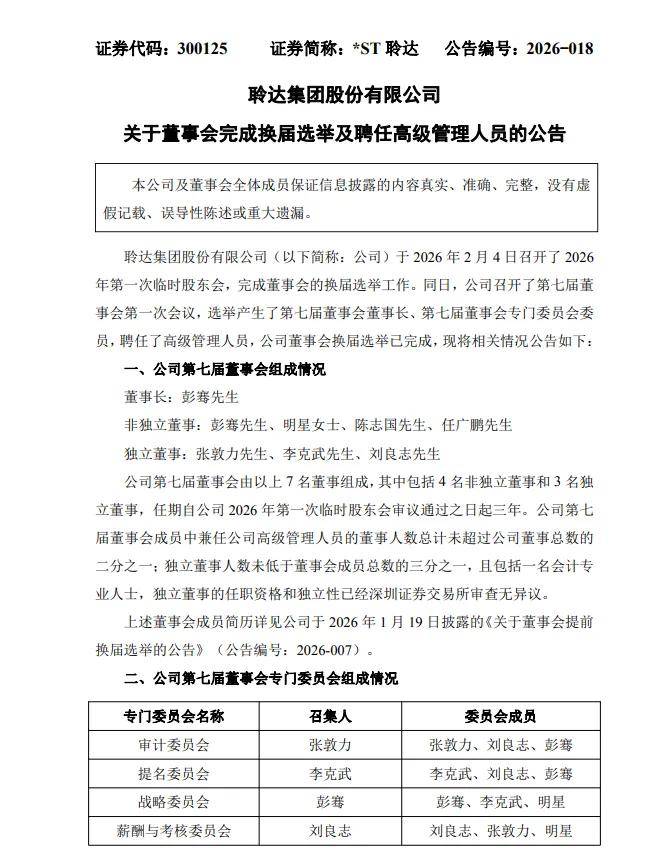 公司治理与人事变动 - 公司完成第七届董事会换届及高级管理人员聘任,管理层出现大规模更迭 [1] - 第六届董事会大部分成员出局,5名董事及2名独立董事共7人离任,新董事会引入多名新成员 [1][7] - 关联方金微半导体实际控制人彭骞当选第七届董事会董事长,原董事长金永峰离任且不再担任任何职务 [6][7] - 1990年出生的明星女士当选董事,并被聘任为公司总经理及董事会秘书 [7] - 原总裁杨绪胜职务变更为副总经理,刘会林被任命为副总经理兼财务总监 [7][21] - 公司新设立各专门委员会,召集人分别为张敦力(审计委员会)、李克武(提名委员会)、彭骞(战略委员会)、刘良志(薪酬与考核委员会) [4] 实际控制权变更 - 2026年1月,精测电子实控人彭骞通过金微半导体与众凌科技斥资4.1亿元取得公司20%股权,成为新的实际控制人 [10] - 自2010年上市以来,公司实际控制权已发生五次变更 [10] 光伏业务困境与战略调整 - 公司于2021年通过收购金寨嘉悦100%股权跨界进入光伏电池片环节 [8] - 旗下金寨嘉悦拥有3.5GW PERC电池产能,但缺乏规模优势 [11] - 2024年3月15日,金寨嘉悦实施临时停产,成为光伏行业首家宣布停产的上市公司 [10] - 公司此前规划的安徽铜陵91.5亿元建设20GW(15GW TOPCon+5GW HJT)电池片扩产计划及金寨嘉悦二期5GW TOPCon扩产计划均已终止 [11] - 在行业供需错配背景下,市场预期公司易主后将剥离光伏资产,主营业务可能发生变更 [11] 公司历史与财务危机 - 2024年7月30日及8月30日,债权人金寨汇金先后对公司及金寨嘉悦申请预重整 [10] - 公司上市后经历多次实控人变更,创始人刘群2014年去世后,控制权先后经阎克伟、刘振东、王正育父女、黄双,最终转移至彭骞 [10]