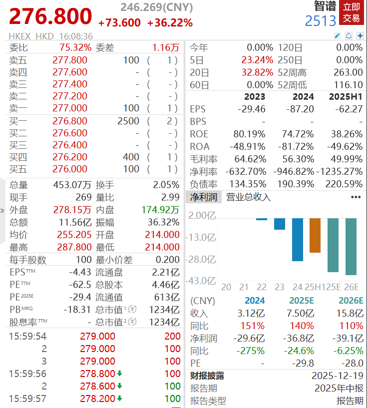 公司股价与交易表现 - 公司股票当日大幅上涨,收盘价276.800港元,上涨73.600港元,涨幅达36.22% [1] - 当日交易活跃,成交总量453.07万股,成交总额11.56亿港元,换手率2.05% [1] - 股价日内波动剧烈,最高价287.800港元,最低价214.000港元,振幅36.32% [1] 公司财务与估值指标 - 公司盈利能力持续为负,2023年、2024年及2025年上半年净利率分别为-632.70%、-946.82%和-1235.27% [1] - 公司负债水平高企,负债率从2023年的134.35%攀升至2025年上半年的220.59% [1] - 公司净资产收益率(ROE)显著下滑,从2023年的80.19%降至2025年上半年的38.26%,总资产收益率(ROA)持续为负 [1] - 公司毛利率呈下降趋势,从2023年的64.62%降至2025年上半年的49.99% [1] - 市场给予公司基于2025年预期净利润的市盈率(PE 2025E)为-29.4倍,总市值约为1234亿港元 [1] 公司业务与市场预期 - 市场预期公司收入将快速增长,预测2024年收入为3.12亿,2025年预期(2025E)为7.50亿,同比增长140%,2026年预期(2026E)为15.8亿,同比增长110% [1] - 市场预期公司净亏损将持续扩大,预测2024年净利润为-29.6亿,2025年预期(2025E)为-36.8亿,2026年预期(2026E)为-39.1亿 [1] 行业技术与产品动态 - OpenRouter平台上线名为"Pony Alpha"的匿名模型,该模型在编程、推理和角色扮演方面表现强劲,并针对智能体(Agent)工作流进行了优化,工具调用准确率极高 [1][2] - "Pony Alpha"模型在海外开发者社区迅速引发关注并爆火 [1] - 根据线索推测,"Pony Alpha"模型可能是基于某个全球热门开源模型的专项进化版,且大概率出自中国企业 [2] - 行业推测将"Pony Alpha"模型的目标锁定在智谱的GLM-5或深度求索的DeepSeek-V4两个国产大模型上 [2] - 智谱公司首席科学家已公开透露即将推出新一代模型GLM-5 [2]