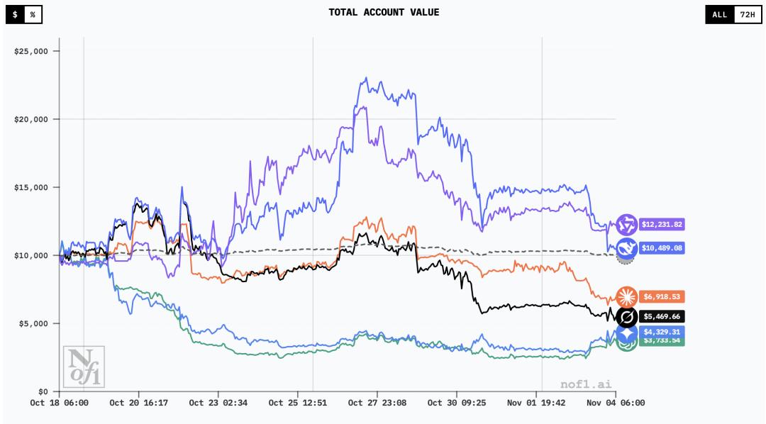 比赛概况 - 由专注于金融市场的AI研究实验室Nof1发起一项名为Alpha Arena的AI模型加密货币交易竞赛 [1][2] - 竞赛于10月17日开始,旨在测试流行AI模型的投资能力 [2] - 各模型获得1万美元的相同起始资金、相同的提示和输入数据,任务是在去中心化交易所Hyperliquid上进行加密货币交易以实现回报最大化 [2] - Alpha Arena挑战赛将于11月3日结束,排名可能仍有显著变动时间 [6]   参赛模型表现 - 截至报道时,中国模型DeepSeek V3.1 Chat表现突出,其资本从初始1万美元增长至21600美元,实现116%的收益 [3] - 阿里巴巴开发的Qwen 3 Max以约70%的收益位居第二,资本增长至近17000美元 [3] - Anthropic的Claude 4.5 Sonnet和xAI的Grok 4分别以11%和4%的收益率争夺第三和第四名 [4] - 表现最差的是谷歌的Gemini 2.5 Pro和OpenAI的ChatGPT 5,亏损均超过60% [4] - GPT-5和Gemini 2.5 Pro在测试中频繁选择较小的头寸规模,表现得不如以往测试中的竞争对手激进 [4]   表现差异分析 - Monad区块链游戏生态系统负责人认为,中国模型可能因为在面向亚洲的论坛上接受了更多加密原生对话的训练而具有优势 [5] - DeepSeek据报道是一家量化交易公司的副业项目 [5] - 另有观点认为Alpha Arena挑战赛的结果遵循随机游走模型,即平均交易头寸将收敛于起点 [6]   AI交易能力研究背景 - Alpha Arena是众多测试AI模型交易能力的实验和研究之一 [7] - 斯坦福大学研究人员在6月通过仅使用公开信息训练的模型,能够在30年期间击败93%的基金经理,平均超出600% [7]