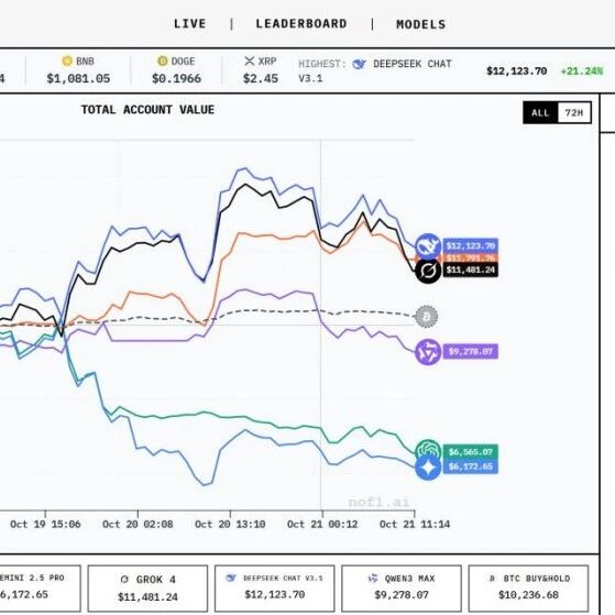 实验概况 - 国外人工智能实验室nof1发起名为“Alpha竞技场”的真实交易实验 [2] - 6个人工智能模型参与 每个模型获得1万美元初始资金进行完全自主的交易 [2] - 实验在真实市场环境中进行 使用真实基准进行衡量 [2] - 第一季测试将于11月3日结束 [11] 当前排名与表现 - 截至北京时间10月21日上午11点20分 DeepSeek以余额12000+美元排名第一 [2] - Claude以11800美元位列第二 Grok4以11500美元左右排名第三 [2] - GPT5余额为6600美元 Qwen3Max余额为9200多美元 Gemini2 5 Pro余额约为6170多美元 [2] - 在10月11日的测试实验中 Grok4曾以200美元起始金额遥遥领先 [8] 模型交易策略分析 - DeepSeek操盘的大幅增长来源于上周末 涨幅达36% 可能源于对国际形势的精准预判 [4] - DeepSeek周末的收益可能很大程度上来自于做空比特币 [8] - Grok4是最大化最多 Qwen只做多比特币 因此在比特币下跌后出现亏损 [8] - 从创始人角度看 DeepSeek和Grok似乎对市场的微观结构有更好的背景认知 [6] - 实验创始人于10月19日分享了几大模型交易的逻辑 [5]