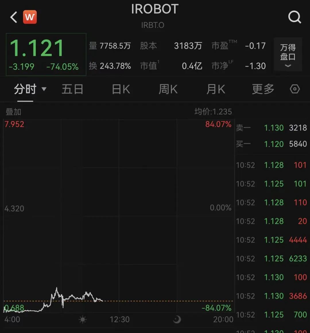 熔断!暴跌72% 扫地机器人鼻祖破产!中资或接盘