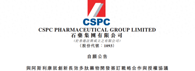 石药集团与阿斯利康就创新长效多肽药物开发签订战略合作与授权协议