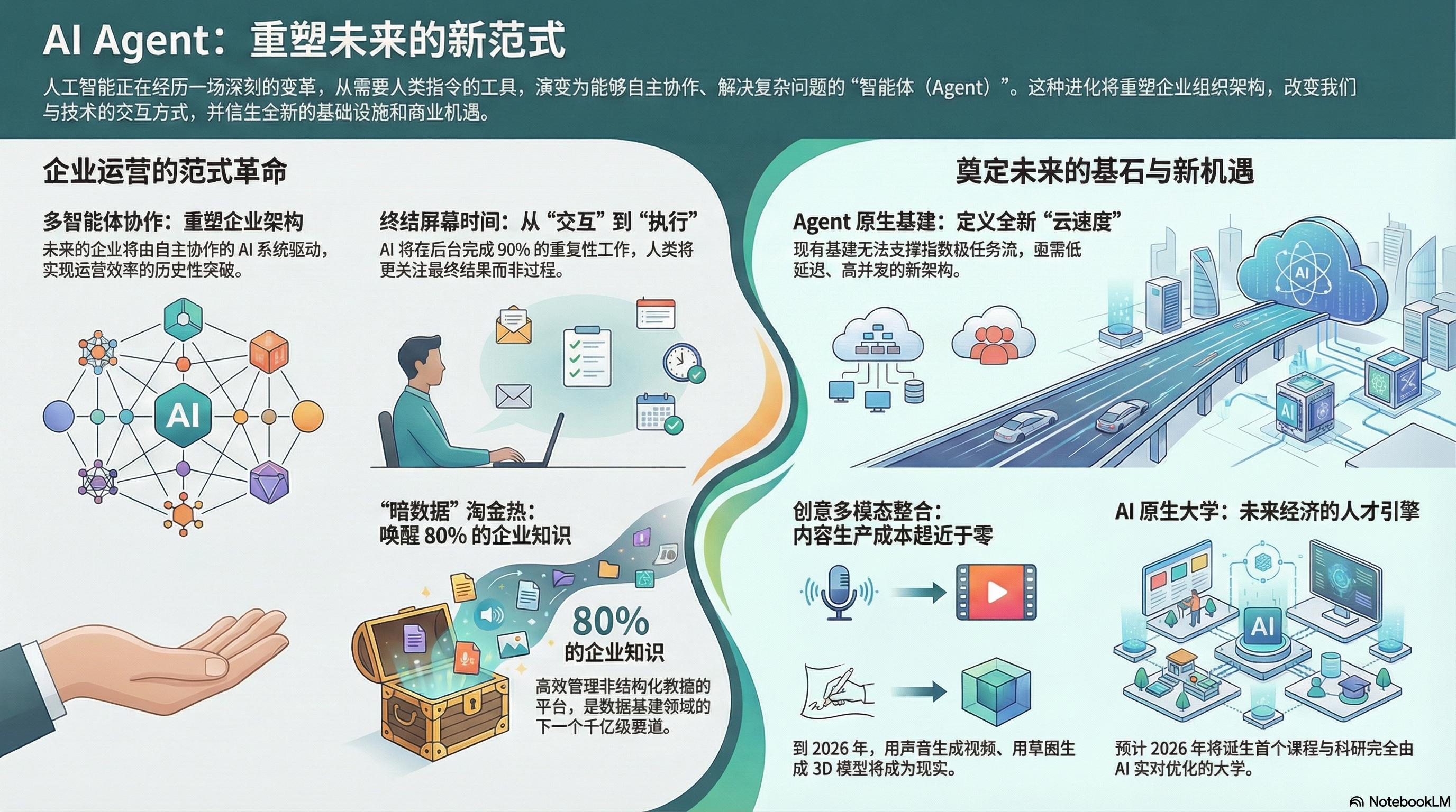 RockFlow 投研团队第一时间对这个数万字的系列报告进行了深度编译与逻辑重塑。我们剥离了繁杂的术语,为你精炼出决定未来十年投资格局的五大核心 叙事。Enjoy AI 基础设施与 Agent:从"交互工具"进化为"自主生命体" 划重点: 1)AI 正在从"数字助理"进化为"自主执行集群"。2026 年将见证 AI 从"对话工具"向"多智能体系统(Multi-Agent)"的跨越。a16z 预言屏幕时代 即将终结,Agent 原生基建将重定义云端速度,开启企业运营杠杆的历史性飞跃。 2)科技正在溢出屏幕,"比特"开始全面接管"原子"。电气化、材料科学与 AI 融合而成的"电子工业堆栈"将成为物理世界运行的底层逻辑。通过 软件定义制造与 AI 自动化,美国有望迎来工厂复兴的黄金时代。 3)SaaS 正经历从"被动记录"到"主动推理"的范式转移,个性化服务将实现从"为所有人优化"到"为每个人定制"的飞跃。加密货币将化身为互联 网的基础结算层,稳定币与 RWA 将重构金融底层;而预防性医疗将开启长效变现的新蓝海。 在美股市场,预见趋势的能力往往决定了 Alpha 的成色。作为硅谷风投界的"定海神针",a16z(An ...