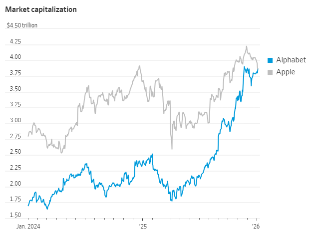 格隆汇1月8日|谷歌的市值自2019年以来首次超过了苹果。截至周三收盘,谷歌市值收于3.88万亿美 元,与此同时,苹果市值收于3.84万亿美元。市值排名的逆转凸显了谷歌与苹果在人工智能战略方向上 的分歧。谷歌在2025年以华尔街表现最亮眼的科技股之一收官,11月,该公司发布第七代张量处理器 Ironwood,这款定制AI芯片有望成为英伟达产品的替代方案。12月,谷歌推出的Gemini 3获得业界一致 好评。与此同时,自OpenAI于2022年末推出ChatGPT掀起科技行业AI竞赛以来,苹果基本缺席这场角 逐。苹果原计划去年推出新一代Siri人工智能助手,但最终推迟了发布。华尔街投行瑞杰金融本周下调 苹果评级,称2026年该公司将难以实现增长。 ...