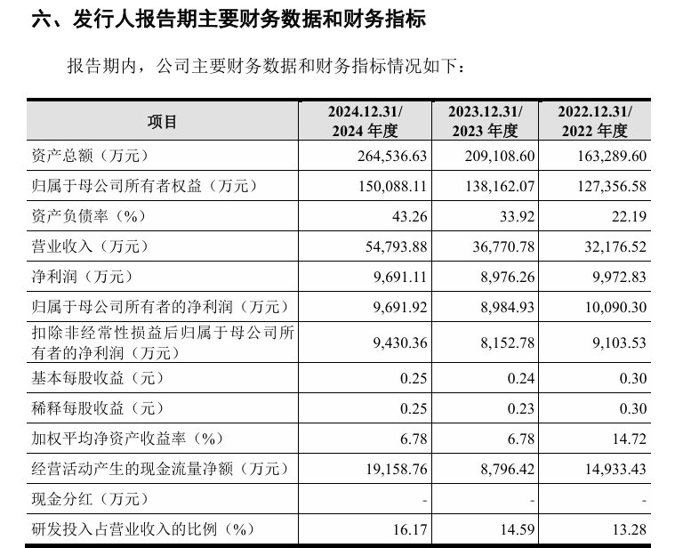 公司基本情况与市场地位 - 公司于11月7日开启申购,发行价格为14.99元/股,申购上限1.05万股,市盈率71.42倍,由上交所上市,保荐人为中信建投 [1] - 公司是境内少数具备12英寸集成电路晶圆制造关键材料研发和量产能力的创新企业之一,主要从事光刻材料和前驱体材料的研发、生产和销售 [1] - 2023年度,公司SOC与BARC销售规模均已排名境内市场国产厂商第一位 [2] - 2024年度,公司自产产品销售收入为34,418.93万元,已成为境内主要的集成电路光刻材料与前驱体材料供应企业之一,实现对境内主流12英寸集成电路晶圆厂广泛覆盖 [2] 产品与技术能力 - 公司自产产品主要包括SOC、BARC、KrF光刻胶、i-Line光刻胶等光刻材料以及TEOS等前驱体材料 [1] - ArF浸没式光刻胶已通过验证并小规模销售,主要应用于先进NAND、DRAM存储芯片与90nm技术节点及以下逻辑芯片生产制造的光刻、薄膜沉积等工艺环节 [1] - 为快速获取客户资源,公司也引进并销售光刻材料、前驱体材料、电子特气及其他湿电子化学品等集成电路关键材料 [1] 行业竞争格局 - 现阶段,中国境内12英寸集成电路用光刻材料与前驱体材料仍然由境外厂商占据主要市场份额 [1] - 境内关键材料厂商虽然已有突破,但尚未在先进制程形成大规模量产供货局面 [1] - 公司产品已实现对日产化学、信越化学、美国杜邦、德国默克、日本合成橡胶、东京应化等境外厂商同类产品的替代 [2] 财务表现 - 公司营业收入从2022年的人民币3.22亿元增长至2024年的人民币5.48亿元 [2] - 公司净利润在2022年度、2023年度及2024年度分别为人民币9972.83万元、8976.26万元、9691.11万元 [2] - 2024年度资产总额为264,536.63万元,归属于母公司所有者权益为150,088.11万元,资产负债率为43.26% [3] - 2024年度加权平均净资产收益率为6.78%,经营活动产生的现金流量净额为19,158.76万元 [3] - 研发投入占营业收入的比例持续提升,从2022年的13.28%增长至2024年的16.17% [3]