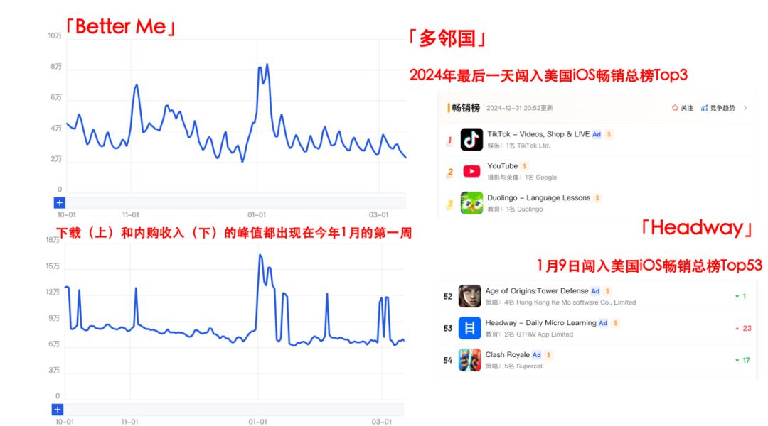 节日情绪驱动的用户行为变化 - 在12月至1月的辞旧迎新期间,用户对改变生活方式、改善关系和管理财务的意愿显著增强,这推动了特定应用需求的集中爆发 [1][4][5] - 这种“重启人生”的心态具体体现在:送礼协作、回顾总结约会经历、设定并冲刺年终财务与个人目标等方面 [2][3][4] - 社交媒体上相关话题热度高涨,例如TikTok上wishlist有180万个短视频,newyearnewme有超过160万个贴文;Instagram上Newyearresolution有251万篇帖子 [2][5] 应用下载与收入呈现季节性峰值 - 健身应用「Better Me」在1月达到全年下载和收入峰值,其单月流水在数百万美元量级 [6] - 学习应用「多邻国」在2024年最后一天闯入美国iOS畅销总榜Top3,为全年最好成绩,其当日内购收入达到平日的近4倍 [6] - 习惯追踪应用「Me+」和「Finch」在1月1日前后迎来下载峰值 [9] - 约会应用「Tinder」在美国地区的下载峰值出现在2025年1月的第一个星期一,而非情人节;在该周末,其平台上发送消息数量增加22%,用户回复速度加快19.4分钟,“点赞”数量增加18.2% [10][14] - 金融理财应用「EveryDollar」在2025年开年迎来全年下载峰值 [11] 广告投放环境与效率在年末年初优化 - 从12月开始,主要广告市场的千次展示成本出现下降趋势,并在1月初迎来波谷:欧洲、拉美和北美CPM分别下降约27%、22%和20%,亚太和中东市场也有回落 [11] - 在年末至年初的“Q5”营销窗口期,特定应用类型的单次安装成本下降明显:社交直播类应用CPI环比下降21%,金融理财类下降16%,工具类下降5% [12] - 更友好的投放环境意味着广告主可以用同样预算触达更多用户,高增长的用户意愿与低成本的投放窗口叠加,使该时期成为重要的营销节点 [11][12] 平台营销策略与增长路径规划 - TikTok for Business将12月至1月的投放节奏拆解为5个阶段的增长曲线,建议从预热、集中冲刺、跨年后保持曝光、二次冲量到平稳收尾 [12] - 在工具类应用的“冲刺期”,可采用Smart+搭配CC/LC的组合投放以提效并管控成本;在“稳量期”需进行效果复盘和基建储备;在“二次冲量期”需增量监控并提升CC/tROAS计划配比以再次拉动跑量 [16] - 通过有序的预算分配和产品搭配,可以将增长势头从假日节点延展到整个1月甚至更长时间 [12][16]