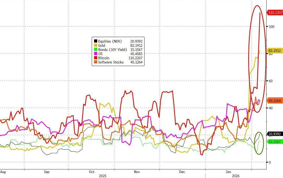 原油市场情绪与仓位变化 - 截至2月3日当周,资金经理将布伦特原油净多头头寸增加31,332手至278,249手,为近10个月来的最高水平 [1][4] - 同期,WTI原油的看涨押注也升至六个月高位 [4] - 原油期权市场看涨情绪浓厚,WTI原油看涨期权相对看跌期权的溢价一度达到2022年以来最高水平,一只主要石油挂钩的交易所交易产品录得2020年以来最大资金流入 [4] - 美国与伊朗持续的紧张局势是主要推动力,促使投资者连续四周增加原油多头押注以对冲潜在供应中断风险 [4][5][6] - 原油价格较年内低点已上涨逾13% [2] 黄金市场情绪与仓位变化 - 截至2月3日当周,对冲基金和其他大型投机者将黄金净多头头寸削减23%至93,438份合约,为自去年10月以来的最低水平,也是15周最低 [1][7] - 黄金价格较1月历史高点已下跌超过11% [2] - 黄金在经历1月份多次刷新历史纪录的涨势后,于1月30日出现2013年以来最大单日跌幅,并持续剧烈波动 [4][8] - 市场普遍认为前期金价涨幅过大过快,急剧回调促使资金经理大幅削减看涨押注 [8] 市场整体风险偏好动向 - 资金在原油与黄金之间的“油进金退”操作,反映了市场风险偏好的微妙变化 [1] - 近期SaaS行业崩盘引发的混乱导致各类资产波动性激增 [2]