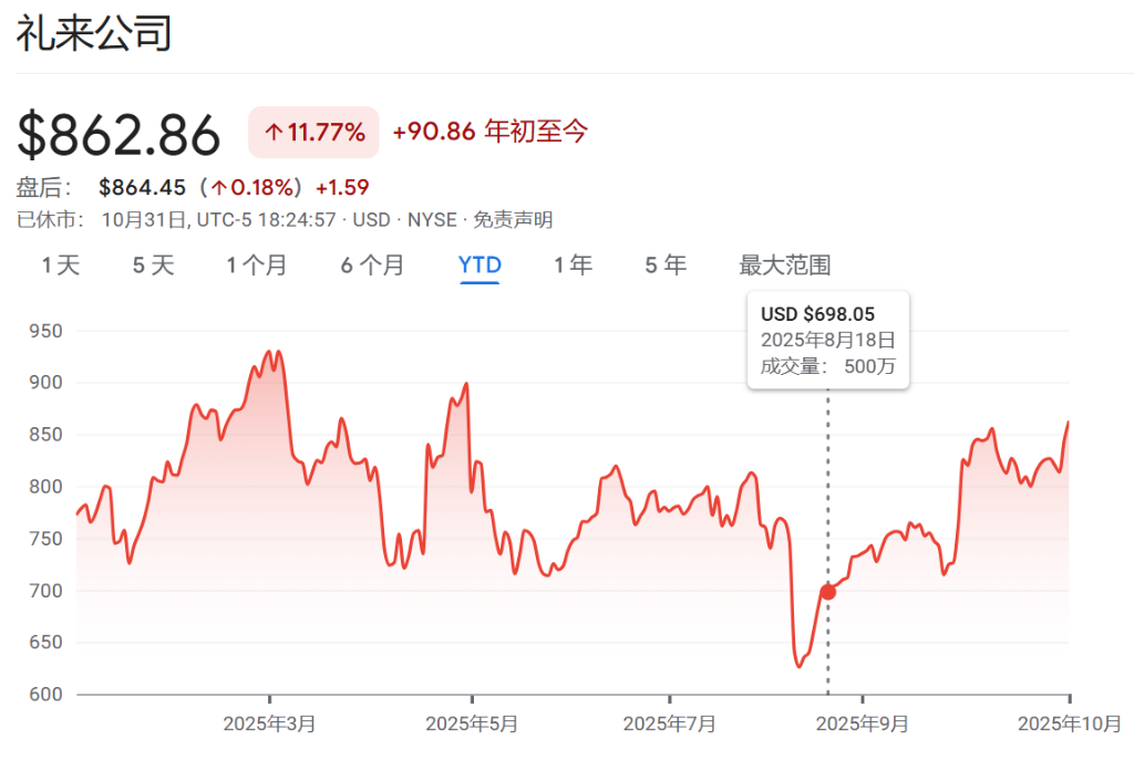 公司业绩与市场表现 - 公司三季度业绩超越市场预期并上调全年指引 [2] - 减肥药Mounjaro三季度营收同比增长109% [2] - 减肥药Zepbound三季度营收大幅增长184% [2] - GLP-1药物定价动态保持稳定,未受竞争对手保险政策影响出现显著价格侵蚀 [2] - 高盛将公司目标价从879美元上调至951美元,重申买入评级 [4] 核心产品管线进展 - 口服减肥候选药物orforglipron被高盛视为生物制药领域最重要的新产品周期之一 [1][2] - orforglipron的全球监管提交即将开始,预计明年在美国推出用于肥胖治疗 [1][2] - 该药物符合FDA国家优先凭证项目至少三项要求中的四项,为加速审批铺平道路 [2] - 口服制剂orforglipron在减重效果、糖尿病方面优于诺和诺德口服司美格鲁肽,并具有心血管/抗炎益处及每日一片无限制的便利性 [3] - 公司计划通过LillyDirect直接面向消费者平台销售orforglipron,类似Zepbound模式 [3] 研发管线与未来增长 - 选择性胰淀素激动剂eloralintide的二期数据即将在肥胖周会议上公布 [3] - 三重激动剂retatrutide的六项三期试验结果预计在2026年底前出炉 [3] - 新兴心血管治疗领域药物muvalaplin(Lp(a)项目)已进入三期临床试验 [3] - 二期数据显示muvalaplin在最高剂量下相比安慰剂可降低超过85%的生物标志物水平 [3] - 口服药物的便利性预计将显著扩大全球目标市场规模 [3]